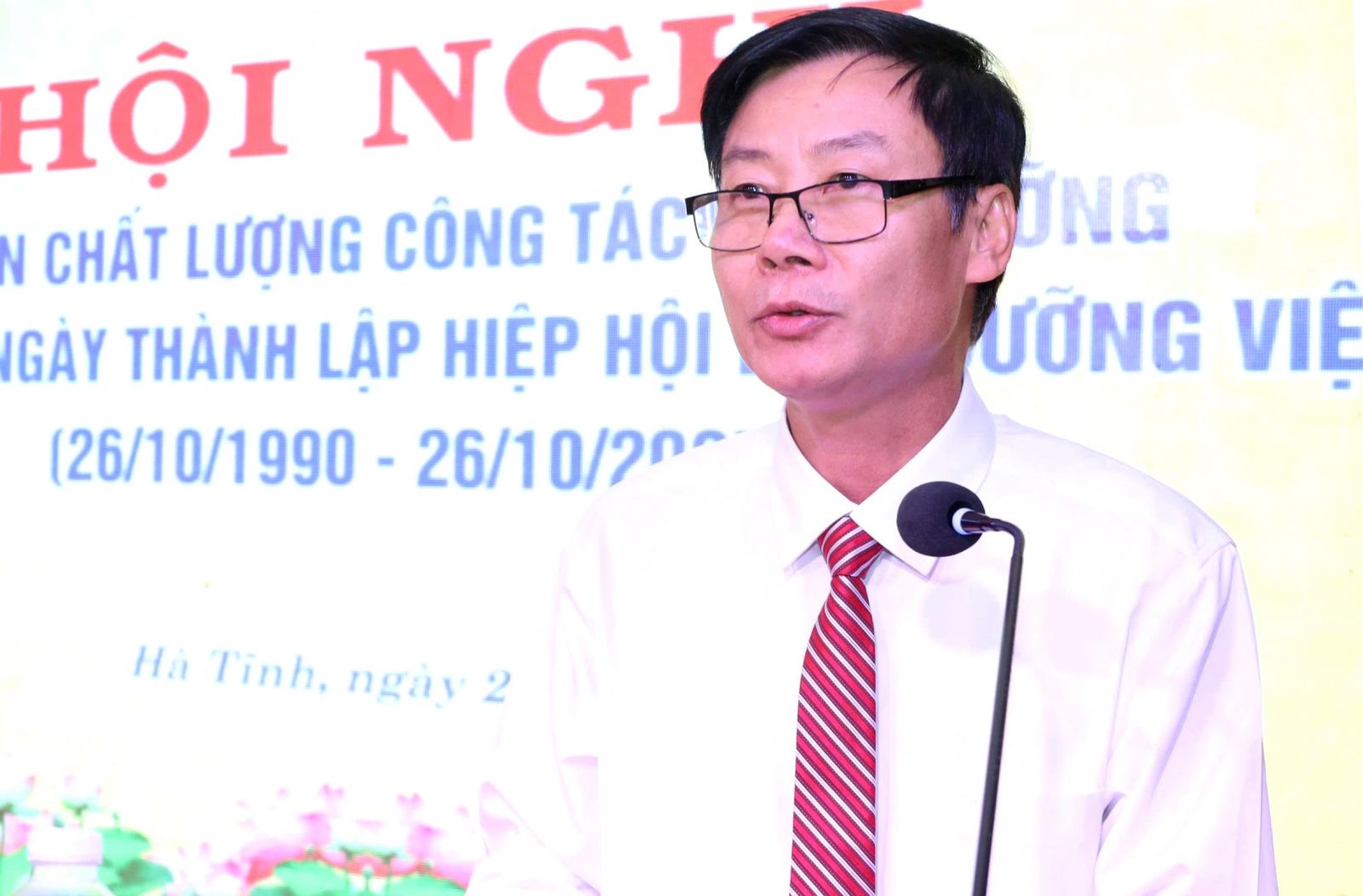 Thạc sĩ Nguyễn Việt Thắng , Phó Chủ tịch Hiệp Hội Điều dưỡng Việt Nam, Chủ tịch Hội Điều dưỡng Hà Tĩnh báo cáo kết quả hoạt động Hội thời gian qua