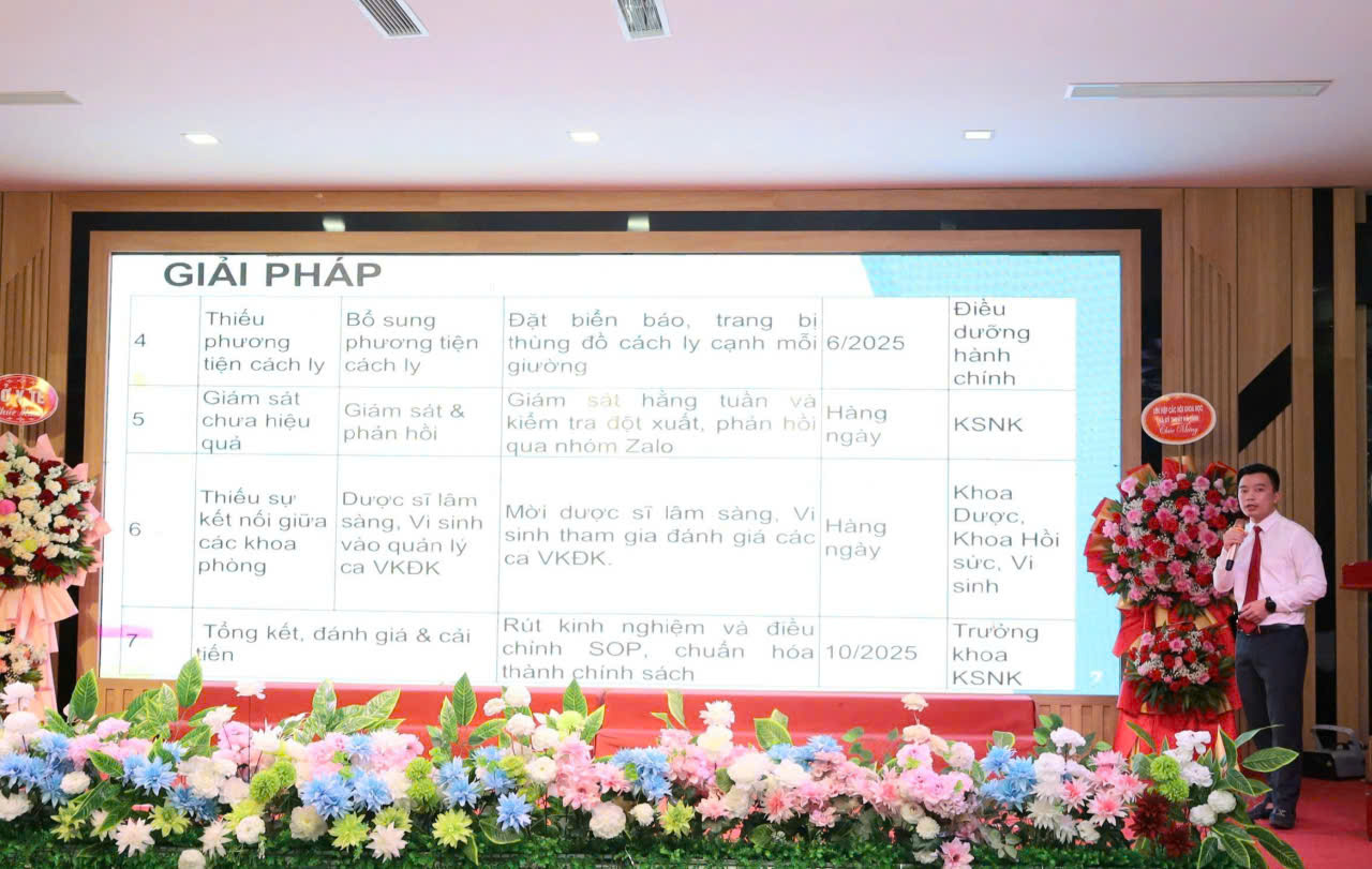 Đại diện báo cáo các giải pháp cải tiến chất lượng công tác điều dưỡng, kiểm soát nhiễm khuẩn